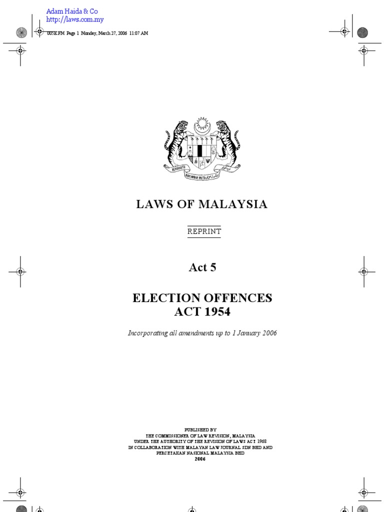 Election Offenses Act 1954 Malaysia By Ethixbase Issuu