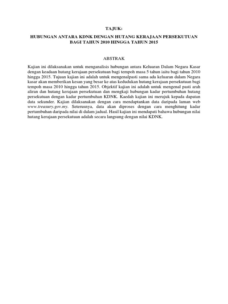 Abstrak Docx 00 Hubungan Antara Kdnk Dengan Hutang Kerajaan Persekutuan Bagi Tahun 2000 Hingga Tahun 2004 Abstrak Tujuan Kajian Ini Dilaksanakan Course Hero