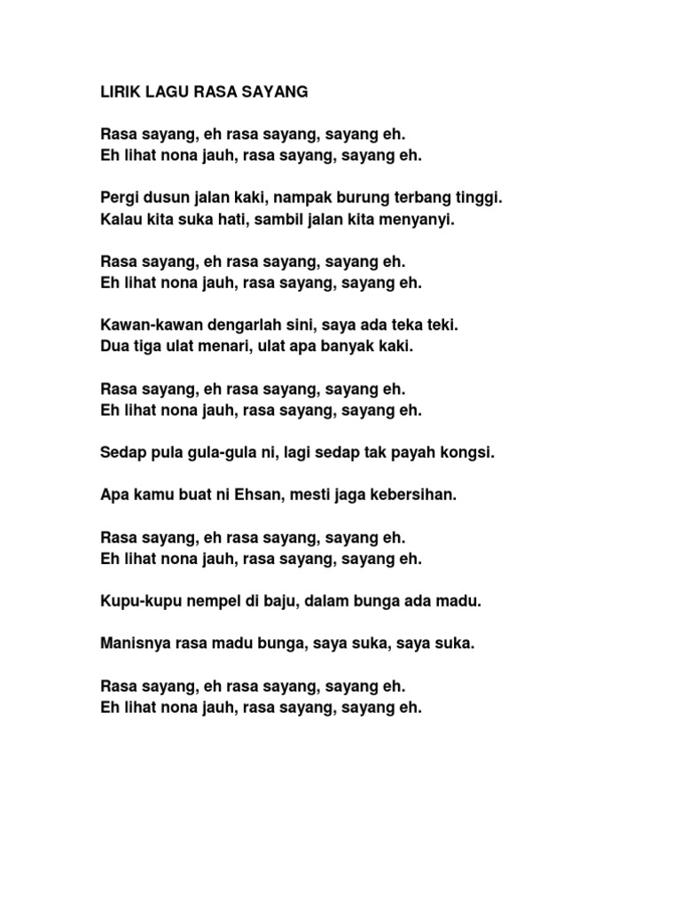 Lyric Chord Rasa Sayang Sayange Indonesia Song Eljq910mxd41