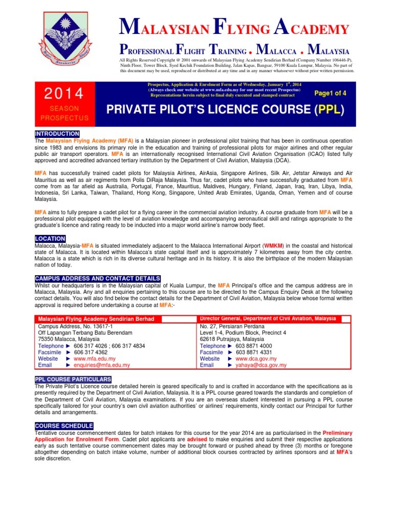 Prospectus Ppl Without Course Fees Details Malaysia Aviation