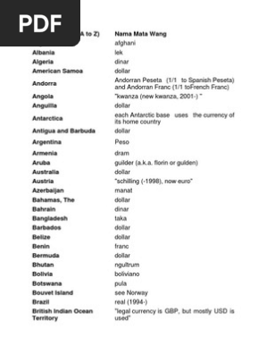 Senarai Nama Dan Simbol Mata Wang Dunia Projek Travel