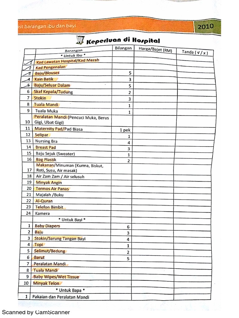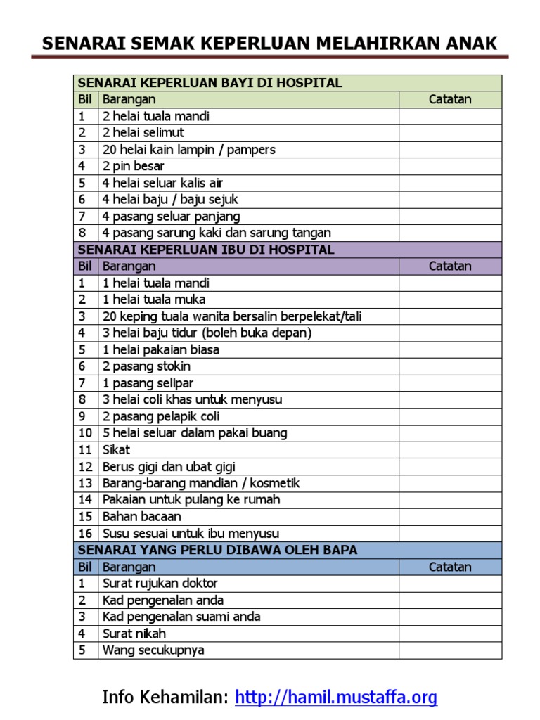 Senarai Keperluan Ibu Bersalin Bayi Baru Lahir Download