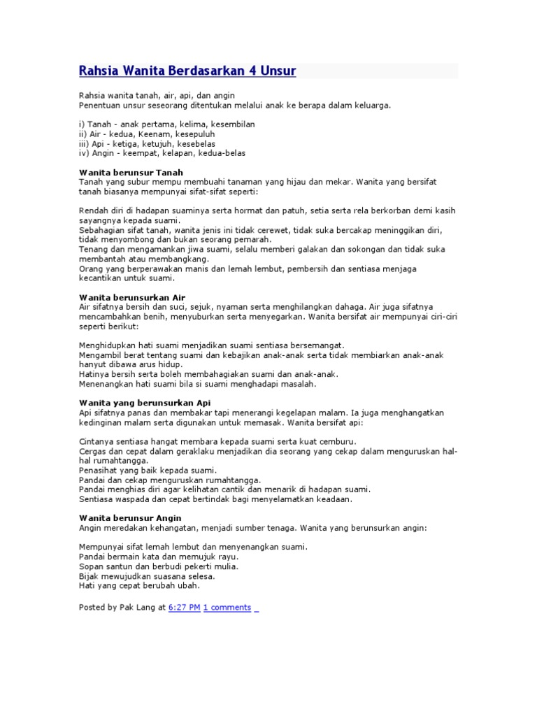This Is My Life Sifat Wanita Mengikut 4 Unsur Alam Tanah Air Api Angin