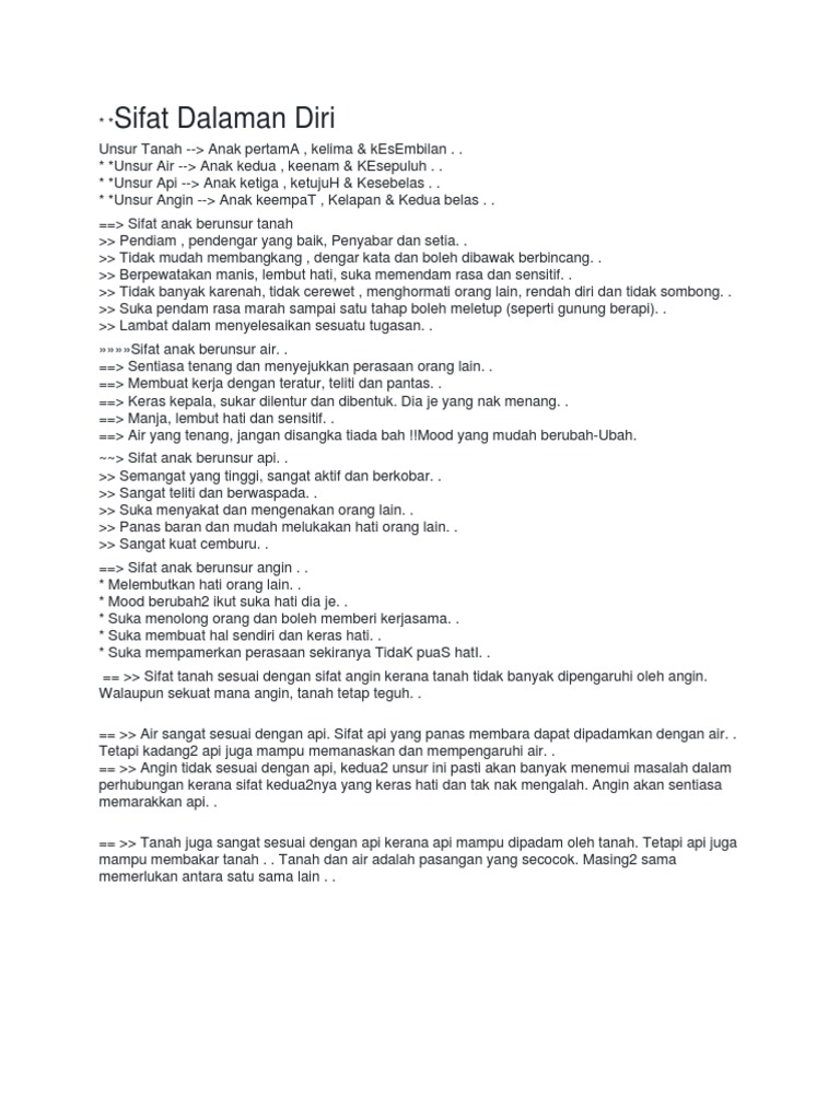 Farrah Care Sifat Anak Mengikut Unsur Air Api Tanah Facebook