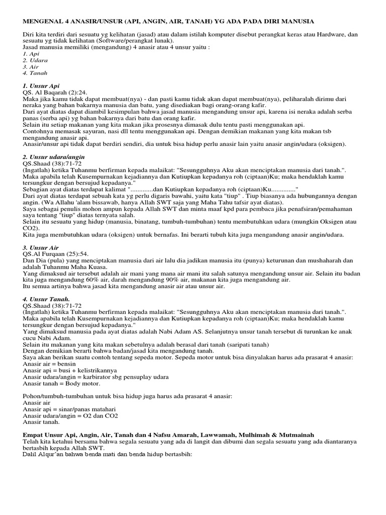 Unsur Tanah Air Api Angin Dalam Islam